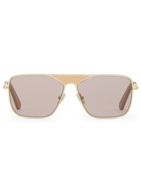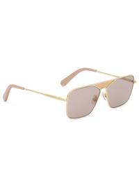 ITEM DETAILS The Amee Navigator in Taupe from our Spring 2025 Collection, Illumination. A navigator shaped metal frame featuring custom acetate temple tips and solid coloured lenses. - Acetate temple tips - Partially exposed metal core - Pink lens are category 1 - Taupe lens are category 2 - Comes with ZIMMERMANN case, dust bag and storage box Style Code: 1024XS25A1 SIZE DETAILS LENS: Pink: Category 1 Taupe: Category 2 FRAME: Lens: 59mm Nose bridge: 13mm Temple length: 145mm CARE INSTRUCTIONS Frame: 100% metal, lens: 100% nylon Comes with a case and dust bag. Clean your sunglasses by gently rubbing them with a lens cleaning cloth and a liquid cleaner specifically designed for eyewear lenses. Whenever setting down your frames, place them lens side up to avoid scratching. When frames are not being worn, place them inside the protective case. Avoid leaving your sunglasses in the car, especially on hot days, to prevent warping. Wearing sunglasses on the top of your head can stretch the hinges over time - avoid if possible. Always check the label or care card for specific care instructions.