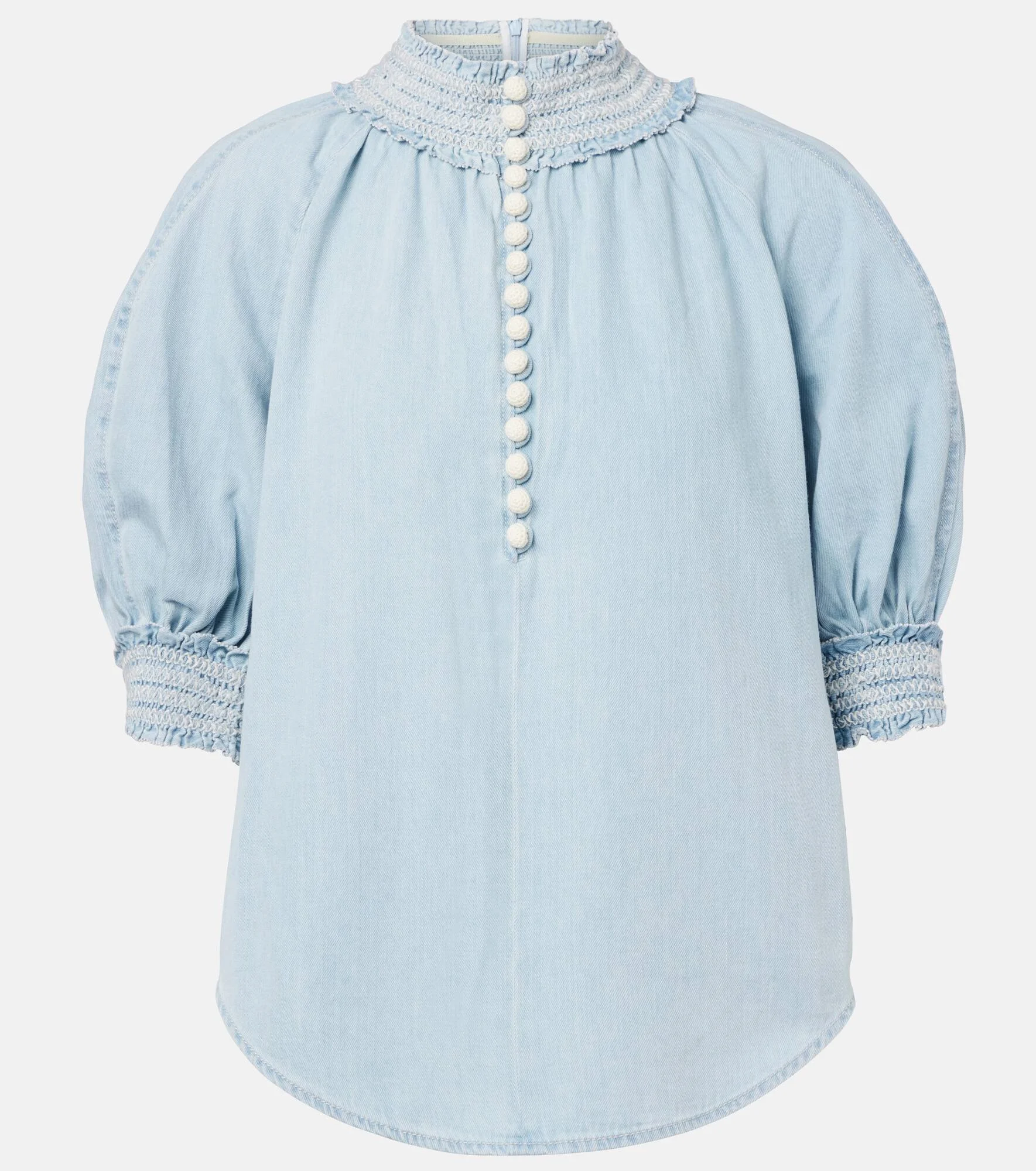Ethereal and romantic barely scratch the surface when describing the Ascension blouse from Zimmermann. With its voluminous balloon sleeves and deep V-neckline, this piece is crafted from denim, striking the perfect balance between sophisticated and casual. Product Details - Material: 100% cotton - Care instructions: machine wash at 30 degrees - Made in China - Designer color name: Ice Storm - Item color: blue - Item number: P01062830 Size & Fit - True to size - Designed for a loose fit - Non-stretchy fabric - Falls to the hip - The model seen in the picture is 178cm-5'10" and wearing a size 0
