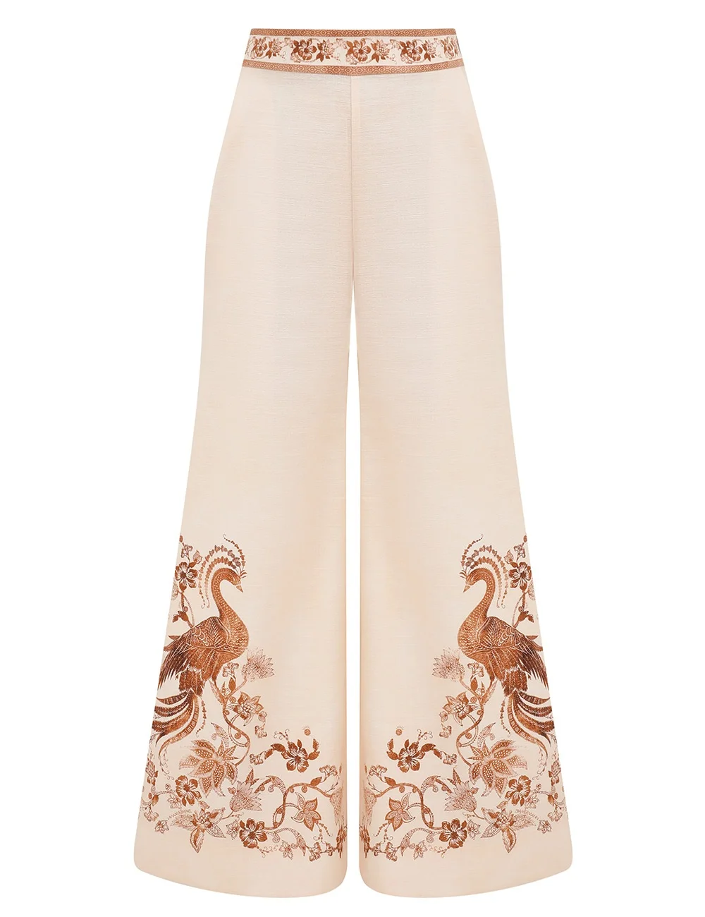 ITEM DETAILS The Ascension Flare Pant in Cream/Tan Floral from our Summer Swim 2025 Collection. A flared cotton pant featuring an elasticated waist and functional side pockets. - 100% cotton fabric - Wide leg pant - Elasticated back waistband - Flared hem - Functional pockets at the hip - Side seam zipper at the left side Style Code: 3416PSS253 SIZE DETAILS 0P 0 1 2 3 Length 39 43 43.5 43.5 43.5 Waist 13.5 14 14 15 16.5 Hip 37 39.5 41 43.5 45 Inseam 28 31 31 31 31 Designed with an elasticated waistband for a flexible fit Light-weight, non-stretchy fabric This garment fits true to size Available in size 0P, suited to clients who are under 5'3"/ 160cm Model is 5'9.5"/178 cm, bust size 32C/10C and wears a size 0 Item measurements are in inches CARE INSTRUCTIONS Main: 100% cotton; lining: 100% cotton Dry clean only code f (hydrocarbon only); Remove any detachable trims prior to dry cleaning; Cover to protect trim; Cool iron with protective cloth; Light steam only; Do not spot clean Always check the label or care card for specific care instructions.