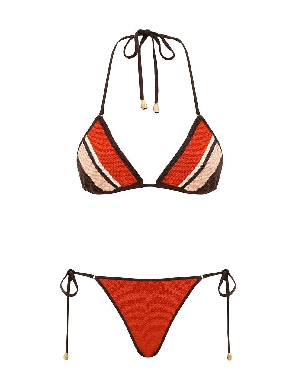 ITEM DETAILS The Acension Knit Tri Bikini in Multi from our Summer Swim 2025 Collection. A crochet bikini set featuring self tie straps with toggle ends. - Lycra bikini with crochet detailing - Triangle top - Straps with toggle ends - Moderate bottom coverage Style Code: 3311WSS253 SIZE DETAILS This garment fits true to size Model is 5'10.5"/179 cm, bust size 34C/12C and wears a size 0 CARE INSTRUCTIONS Main: 90% cotton, 9% polyamide, 1% elastane; lining: 92% polyamide, 8% elastane Do not roll up when wet; Rinse thoroughly after use; Cold hand wash separately with mild detergent, avoid fabric softener; Do not soak; Reshape garment whilst damp; Lay flat to dry; Do not bleach or iron; Do not tumble dry; Do not dry clean; Light colours may be transparent when wet; Avoid contact with sunscreens, oils and rough surfaces; Avoid high temperature pools and spas treated with harsh chemicals Always check the label or care card for specific care instructions.