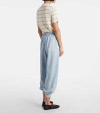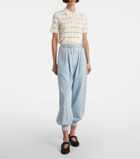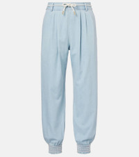 Made from lightweight denim, the Ascension jeans from Zimmermann are a comfortable fit for warm-weather days. The tapered style features a pleated front, elasticated ankle cuffs, and a drawstring waist. Product Details - Material: 100% cotton - Care instructions: machine wash at 30 degrees - Made in China - Designer color name: Ice Storm - Item color: blue - Item number: P01062901 Size & Fit - True to size - Elasticated waist - Adjustable at the waist - Non-stretchy fabric - Tapered leg - The model seen in the picture is 178cm-5'10" and wearing a size 0