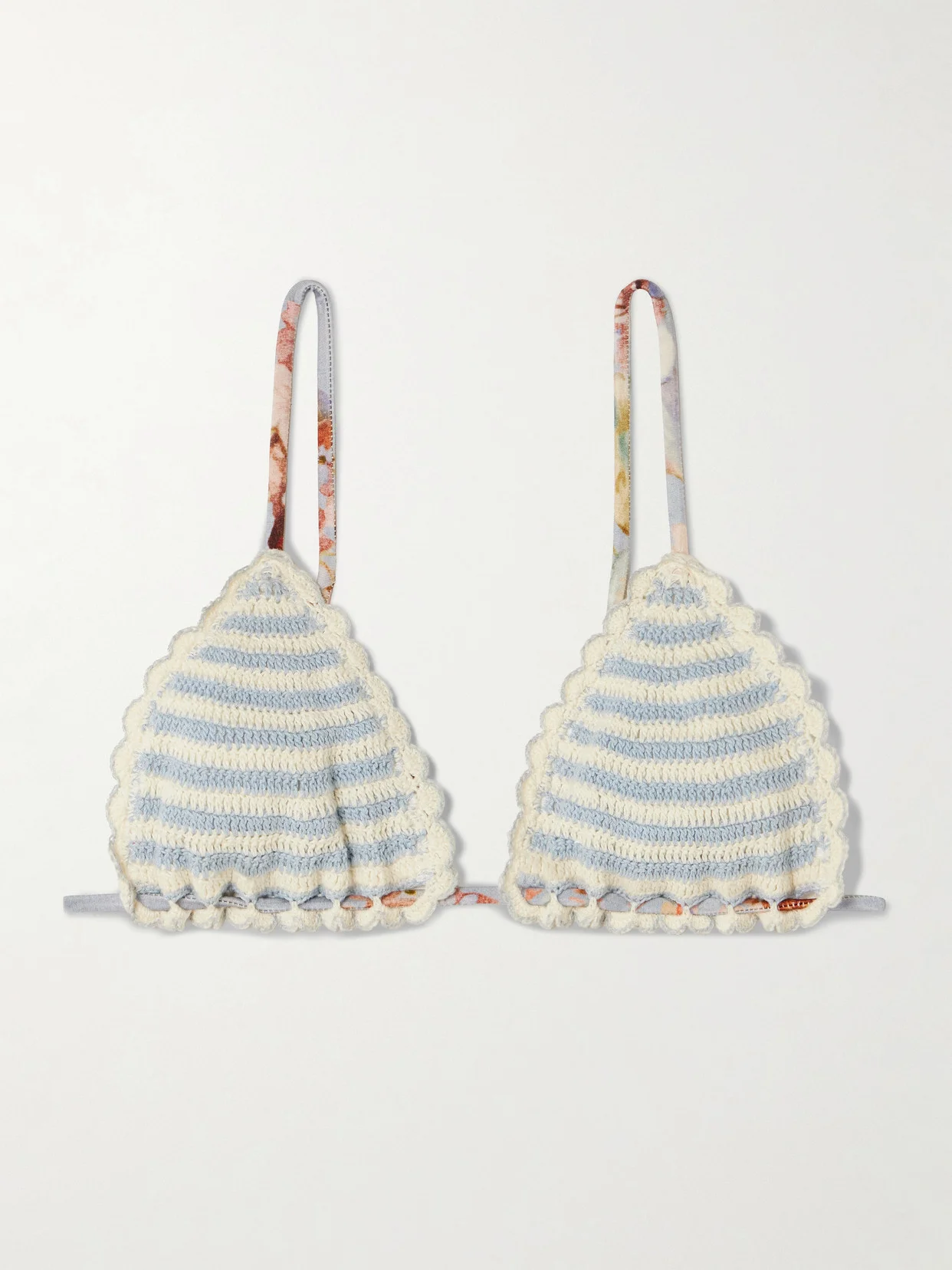 Zimmermann's 'Awaken' bikini top has striped crocheted cups and floral-print stretch ties. It's fully lined for coverage and can be adjusted to your perfect fit.