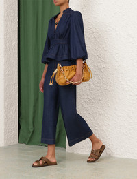 ITEM DETAILS The Awaken Denim Blouse in Ink from our Resort Swim 2026 Collection. A denim blouse featuring a plunging V-neckline, bell sleeves with elasticated cuffs, finished with centre front rouleau buttons and a flared peplum hem. - Denim blouse - V-neckline with partial stand collar - Functional buttons down centre front - Fitted waistband - Metal zip closure at centre back - Topstitching throughout - Elasticated cuffs Style Code: 7052TRS261 SIZE DETAILS 0P 0 1 2 3 4 Length 19 20.5 21 21.5 21.5 21.5 Bust 34.5 36 38.5 40 42.5 44 Waist 26 27.5 30 31.5 34 35.5 Sleeve 20.5 22 22.5 22.5 23 23 Designed to be fitted at the bust and waist Heavy-weight, non-stretchy fabric This garment fits true to size Available in size 0P, suited to clients who are under 5'3"/ 160cm Model is 5'9.5"/178 cm, bust size 32C/10C and wears a size 0 Item measurements are in inches CARE INSTRUCTIONS 100% cotton Gentle cold machine wash separately with mild detergent; Remove any detachable trims prior to cleaning Cover to protect trim; Do not soak or bleach; Do not tumble dry; Dry in shade without delay; Iron in low temperature with protective cloth; Do not spot clean; Dry cleanable code p Always check the label or care card for specific care instructions.