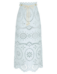 ITEM DETAILS The Awaken Embroidered Skirt in Mint from our Resort Swim 2026 Collection. A linen midi skirt featuring a fitted waistband, removable waist belt, finished with an invisible centre back zip closure and scalloped embroidery at the waistband and hem. - Midi-length linen skirt - High waistband with belt loops - Invisible zip closure at centre back - Back vent split - Heavily embroidered - Short lining Style Code: 6179SRS261 SIZE DETAILS 0P 0 1 2 3 4 Length 32.5 36 36 36 36 36 Waist 25 26 28.5 30.5 32.5 34.5 Hip 35.5 37 39.5 41 43.5 45 Designed to be fitted at the waist and hips Light-weight, non-stretchy fabric This garment fits true to size Available in size 0P, suited to clients who are under 5'3"/ 160cm Model is 5'9.5"/178 cm, bust size 32C/10C and wears a size 0 Item measurements are in inches CARE INSTRUCTIONS Main: 100% linen; embroidery: 100% polyester; lining: 100% cotton; fusing: 100% polyester Dry clean only code f (hydrocarbon only); Remove any detachable trims prior to dry cleaning; Cover to protect trim; Iron in low temperature with protective cloth; Light steam only; Do not spot clean Always check the label or care card for specific care instructions.