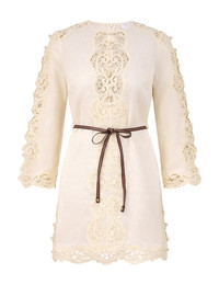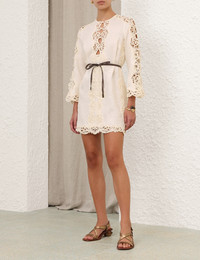 ITEM DETAILS The Awaken Embroidered Tunic in Cream from our Resort Swim 2026 Collection. A linen mini dress featuring centre front buttons, long sleeves with wide cuffs, a removable leather waist belt, finished with heavy embroidery throughout. - Mini-length linen dres - Keyhole cutouts at bust - Long sleeves with embroidered cut-outs - Centre back invisible zip closure - Partial side splits - Stitch leather waist belt - Lined Style Code: 5703DRS261 SIZE DETAILS 0P 0 1 2 3 4 Length 30.5 32.5 33 33.5 33.5 34 Bust 35.5 37 39.5 41.5 43.5 45 Waist 34.5 37 39.5 41 43.5 45 Hip 38.5 41 42.5 45 46.5 49 Sleeve 20 21 21.5 21.5 21.5 22 Fitted at the bust, relaxed through the legs Mid-weight, non-stretchy fabric This garment fits true to size Available in size 0P, suited to clients who are under 5'3"/ 160cm Model is 5'9.5"/178 cm, bust size 32C/10C and wears a size 0 Item measurements are in inches CARE INSTRUCTIONS Dry clean only code f (hydrocarbon only) Remove any detachable trims prior to dry cleaning Cover to protect trim Iron in low temperature with protective cloth Light steam only Do not spot clean Always check the label or care card for specific care instructions.