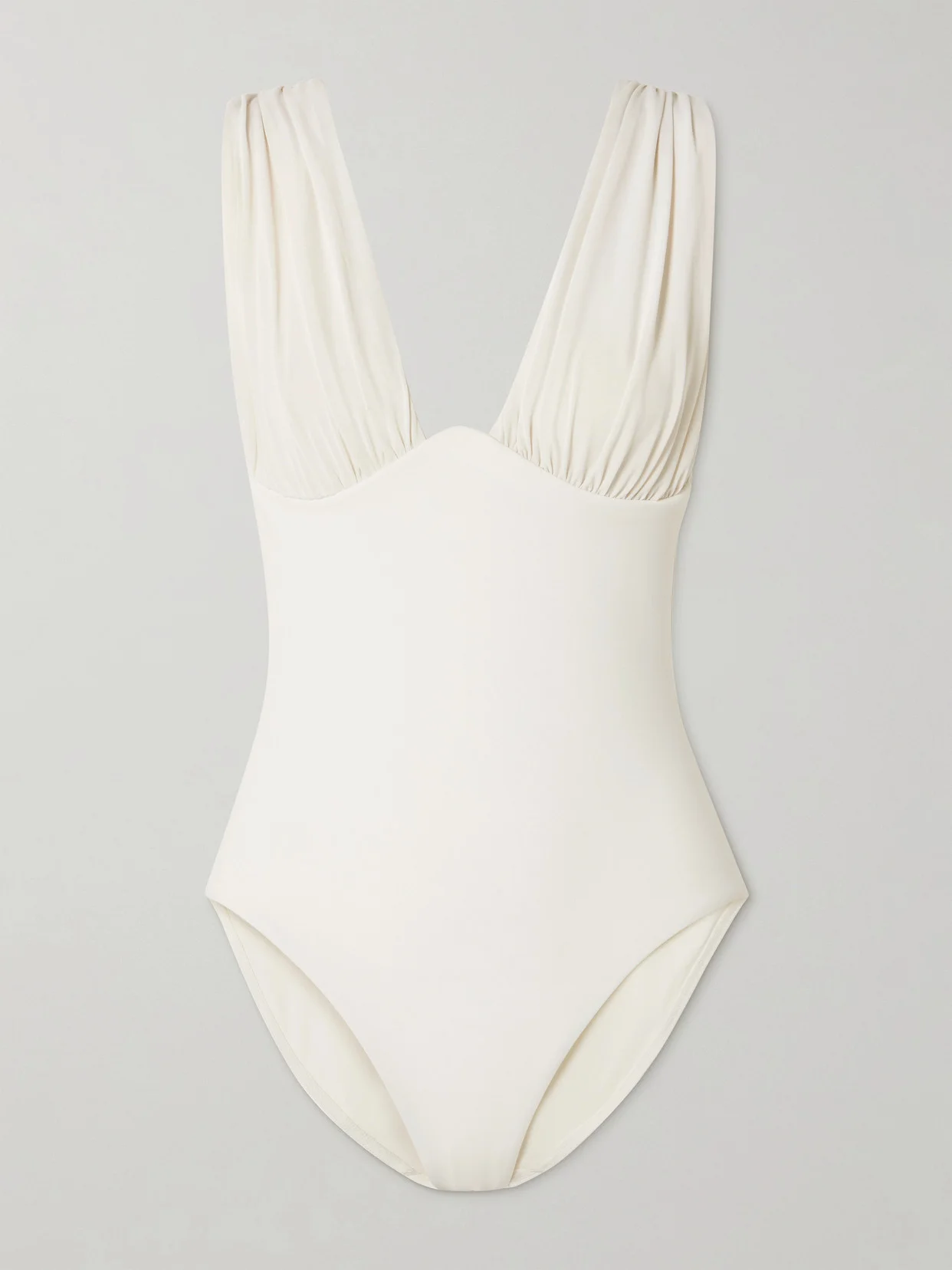 Zimmermann's swimsuit plays with texture to create a sculptural, feminine silhouette. Made from stretch fabric, it's gathered along the softly curved bust and shoulders and fits smoothly through the waist and briefs. Underwired cups provide gentle lift and support.