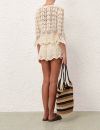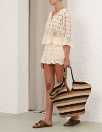 ITEM DETAILS The Awaken Lace Crochet Short in Cream from our Resort Swim 2026 Collection. A cotton crochet short featuring a concealed waistband, scalloped trim detailing and flared hem. - 100% cotton fabric - Mid-rise, elasticated waistband - Short lining Style Code: 6315ARS261 SIZE DETAILS 0P 0 1 2 3 4 Length 10.5 11.5 12 12 12 12.5 Waist 23.5 24.5 27 29 30.5 33 Hip 40 41.5 44 46.5 48 50.5 Inseam 2.5 2.5 2.5 2.5 2.5 2.5 Designed with an elasticated waistband for a flexible fit This garment fits true to size Available in size 0P, suited to clients who are under 5'3"/ 160cm Model is 5'9.5"/178 cm, bust size 32C/10C and wears a size 0 Item measurements are in inches CARE INSTRUCTIONS Main: 100% cotton; lining: 86% recycled polyester, 14% elastane Dry clean only code f (hydrocarbon only) Remove any detachable trims prior to dry cleaning Cover to protect trim Iron in low temperature with protective cloth Do not spot clean Store garment flat do not hang Always check the label or care card for specific care instructions.