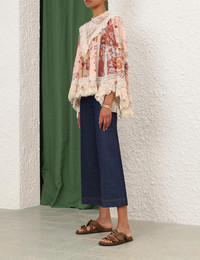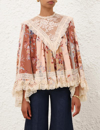 ITEM DETAILS The Awaken Lace Trim Blouse in Spliced Print from our Resort Swim 2026 Collection. A long sleeve cotton blouse featuring heavy gathering and a spliced all-over floral print, finished with lace trim detailing throughout. - Cotton blouse - Relaxed sleeves with wide cuffs - V-neckline with sheer lace overlay across bust and back - Rouleau loop buttons at back neck - Frill trim at hem and sleeves Style Code: 5764TRS261 SIZE DETAILS 0P 0 1 2 3 4 Length 22.5 24 24 24.5 25 25 Sleeve 21.5 23 23.5 23.5 23.5 23.5 Designed for a relaxed fit This garment fits true to size Available in size 0P, suited to clients who are under 5'3"/ 160cm Model is 5'9.5"/178 cm, bust size 32C/10C and wears a size 0 Item measurements are in inches CARE INSTRUCTIONS Main: 100% cotton; contrast: 100% polyamide; embroidery: 100% polyester; trim: 100% cotton Dry clean only code f (hydrocarbon only); Remove any detachable trims prior to dry cleaning; Cover to protect trim; Do not steam; Iron in low temperature with protective cloth; Do not spot clean Always check the label or care card for specific care instructions.