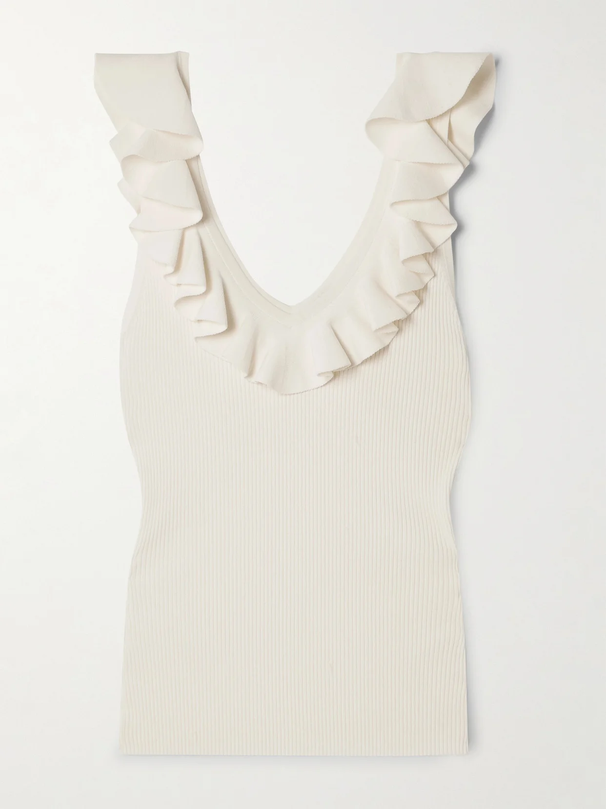 Awaken Ruffled Ribbed-knit Top