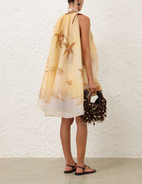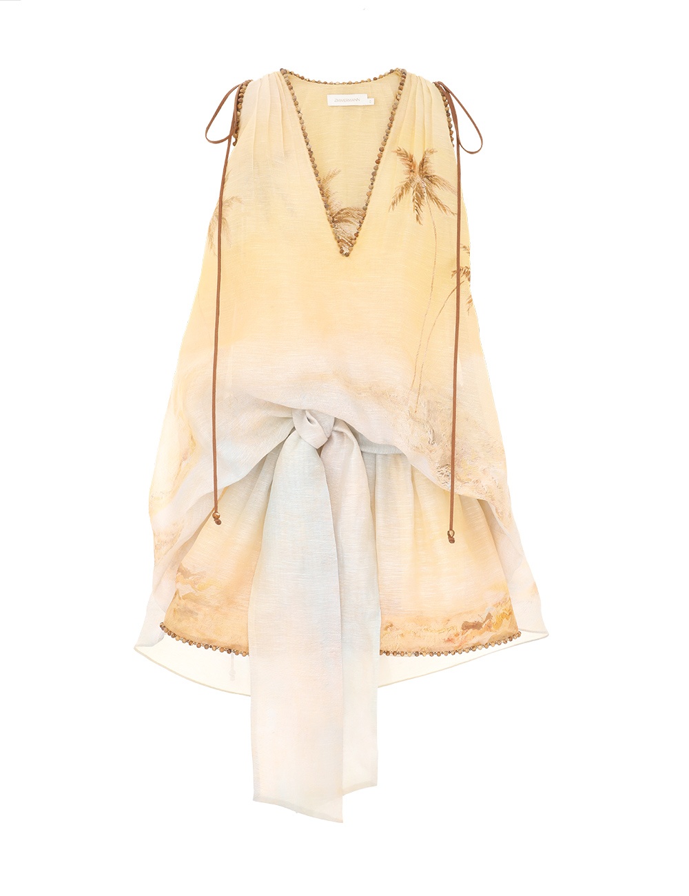 ITEM DETAILS The Balance Plunge Mini Dress in Yellow Seascape from our Spring 2025 Collection, Illumination. A silk linen organza mini dress featuring a deep V-neckline with a stone bead trim around the neckline and armholes, and a cape detail at the back with an elasticated waist. - Silk linen mini dress - Placement print throughout - Invisible zip closure at left side - Elasticated waist - Self tie suede tie detailing at the shoulders - Lined Runway: This style was featured on the S25 Runway. Style Code: 3089DS253 SIZE DETAILS 0P 0 1 2 3 4 Length 19.5 21 21 21.5 21.5 22 Waist 32.5 34.5 36 38.5 40 42.5 Relaxed fit This garment fits true to size Available in size 0P, suited to clients who are under 5'3"/ 160cm Model is 5'9.5"/178 cm, bust size 32C/10C and wears a size 0 Item measurements are in inches CARE INSTRUCTIONS Main: 52% linen, 48% silk, bodice lining: 52% linen, 48% silk, skirt lining: 100% viscose Dry clean only code f (hydrocarbon only); Cover to protect trim; Cool iron with protective cloth; Do not spot clean ; Always check the label or care card for specific care instructions.