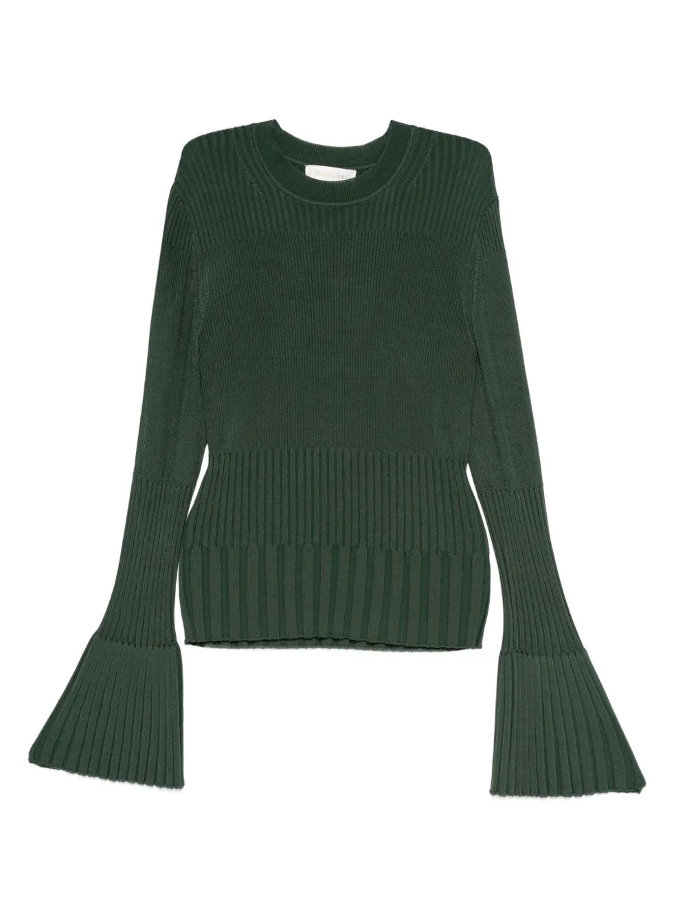ribbed bell-sleeve sweater Highlights - Dark green - Ribbed knit - Bell sleeves - Round neck - Straight hem Imported Composition Wool 100% Washing instructions Read Manufacturer Guidelines