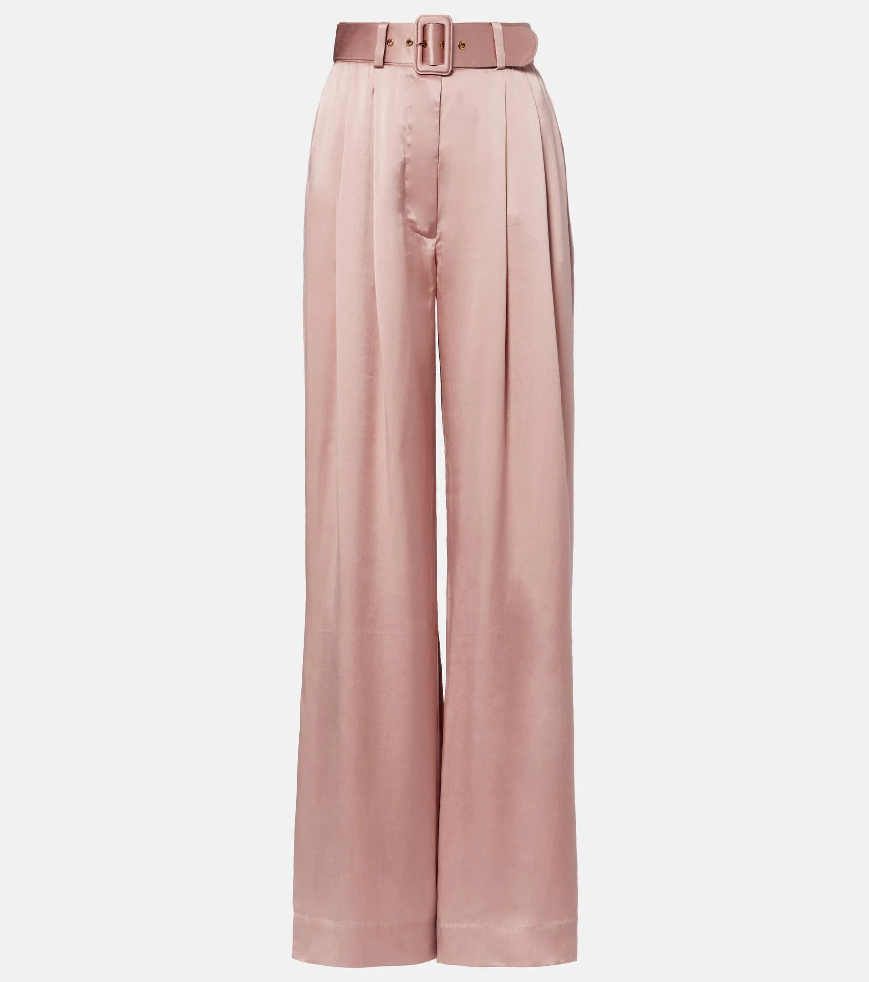 Ethereal and romantic barely scratch the surface when describing a Zimmermann piece. These silk satin pants are tailored to a sleek, wide-leg silhouette, complemented by a detachable belt and a pleated finish. Product Details - Material: 100% silk - Care instructions: dry clean - Made in China - Color: pink - Designer color name: Dusty Rose - Detachable belt - Belt loops - Closure: zipper fly, button and hook fastenings - Item number: P01154308 Size & Fit - True to size - Adjustable at the waist - Non-stretchy fabric - Wide-leg - The model seen in the picture is 178cm-5'10" and wearing a size 0