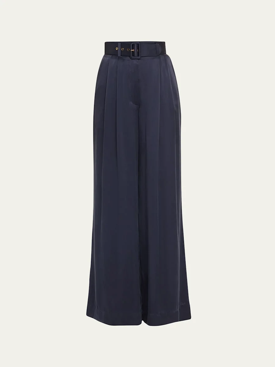 Zimmermann silk pants featuring a belted waist High rise Side pockets Pleated front Straight legs Full length Hook/zip fly; belt loops Silk Dry clean Imported