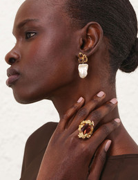 ITEM DETAILS The Bloom Earrings in Gold/Burgundy from our Cruise 2026 Collection, Twisted Romance. A gold plated drop earring featuring baroque pearls. - 12KT gold plated earring - Glass cabochon and freshwater pearls - Stud post back - Sold as a pair Style Code: 2384XC26A1 SIZE DETAILS Suitable for pierced ears. Sold as a pair. CARE INSTRUCTIONS Stone: baroque pearls; stone 2: glass; hardware: 12 karat gold plated brass; post: stainless steel Zimmermann jewellery is made from 12kt gold-plated brass and freshwater pearls Please remove during exercise, showering, or swimming Avoid contact with perfumes, acetones, creams, and water to prevent damage or discoloration Each piece is unique with natural variations Clean with a soft, lint-free clothavoid cleaning products Store in a cool, dry place, away from sunlight and heat Always check the label or care card for specific care instructions.