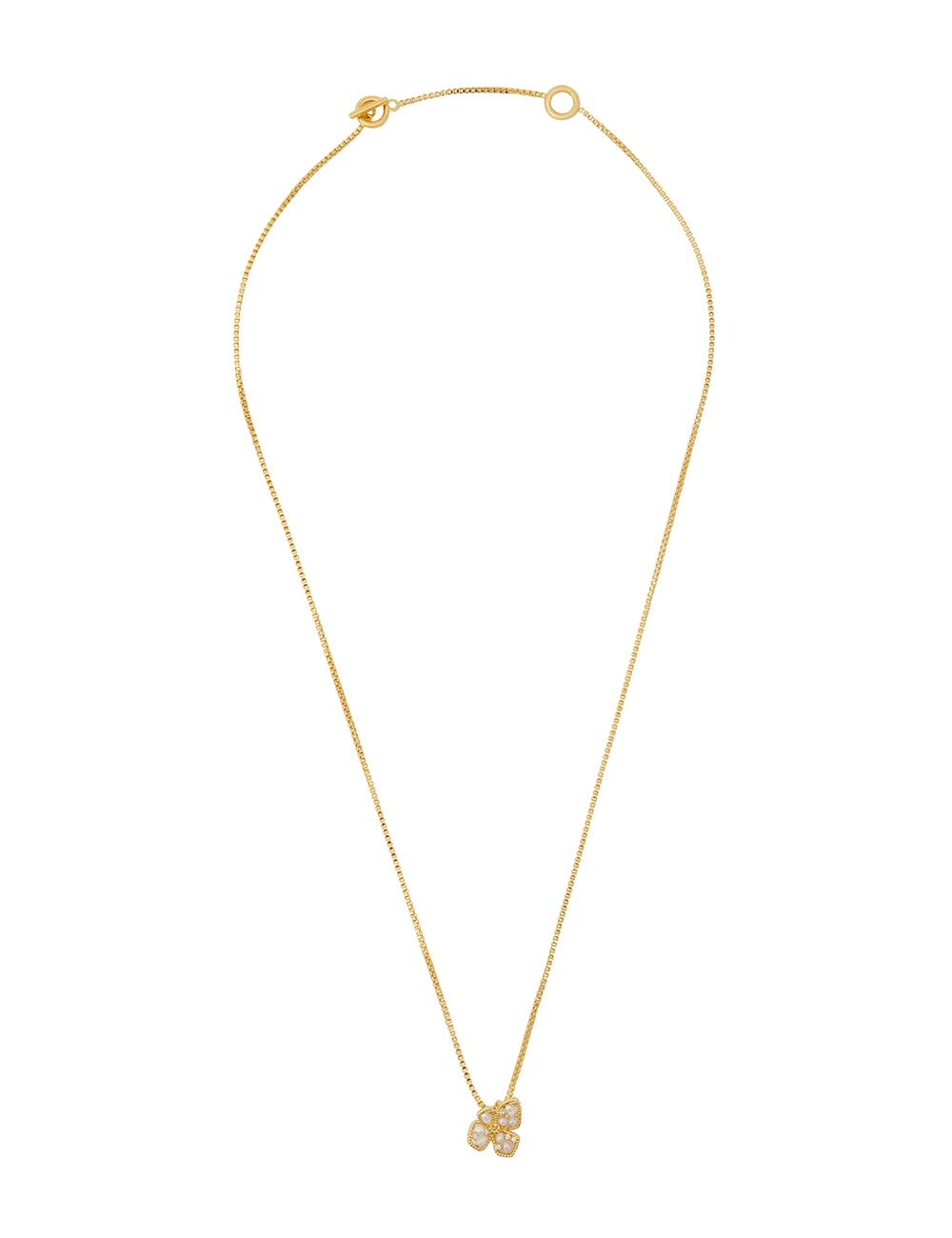 ITEM DETAILS The Zimmermann Bloom Necklace in Gold/Pearl from our Resort 2024 Collection, Matchmaker. A gold plated chain necklace featuring semi precious and cubic zirconia stone pendant. - 12KT gold plated brass - Freshwater pearls - White cubic zirconia - T-bar clasp Style Code: 5214R24 SIZE DETAILS One size. CARE INSTRUCTIONS Semi-precious stone care We have taken great care in sourcing this semi-precious stone for its natural beauty and create our own special shapes and hand cuts to make our jewellery unique. Any irregularity is inherent in its nature and should not be considered a flaw. There will be natural variance from piece to piece. Zimmermann jewellery is produced in 12kt gold-plated brass. Please remove when exercising, showering or swimming. Avoid contact with perfumes, acetones, hand and body creams and water as they may cause damage or discolouring. Clean your jewellery carefully with a soft, non-abrasive and lint-free cloth to remove dirt and dust. Do not use cleaning products. Store in a cool, dry place to prevent damage. Keep away from direct sunlight and heat. Always check the garment care label for specific care instructions.