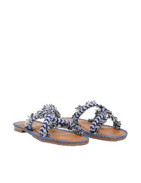 ITEM DETAILS The Braided Strap Sandal in Blue Multi from our Summer Swim 2023 Collection. A flat leather sandal featuring contrast braided raffia straps. - Made in Spain - Contrast artisan stitching on insole - Serrated rubber sole Style Code: 4663S23 SIZE DETAILS This shoe fits true to size, we recommend you select your normal size. CARE INSTRUCTIONS 100% cotton woven raffia 100% calf leather outsole Leather care This item was hand crafted using genuine leather. Leather can alter or stain if in contact with humidity or atmospheric agents. Marks or irregularities in natural hides can appear in even the most luxurious skins. These are naturally occurring features and should not be thought of as imperfections. On occasion leather can stain clothing or other objects it comes into contact with. To maintain in best condition, avoid direct exposure to light and heat, water, oils, perfume and cosmetics and store at room temperature. Cotton care This item has been crafted from 100% cotton. To maintain in the best condition, treat the material with a waterproofing spray all around the article and spot treat stains with a mild detergent. Be sure to gently brush with a soft brush and remove all soap being sure to rinse thoroughly and then air dry away from direct sunlight. Over time this material can lose its stiffness and structure, this is just a characteristic of cotton. If this material is printed it is possible that over time the pigments can travel through the intricate fibres so be careful during wear and cleaning. If this item is in direct contact with other pigmented materials then it may absorb the colours and stain the cotton. Be sure to store this item in a moisture free and dry environment in its dust bag with any moisture, all coloured clothing, furnishings, and accessories. Be sure to store this item in a damp free and dry environment in its dust bag.