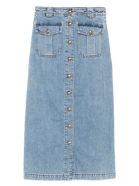 button-front flap-pocket skirt Highlights - Dawn blue - Denim - Button fastening - Flap pockets - Straight hem Imported Composition Cotton 100% SIZE & FIT Model measurements Height 5 ft 10 in(1.77 m) Bust/Chest 33.07 in(84 cm) Hips 37 in(94 cm) Waist 24.8 in(63 cm) Washing instructions Machine Wash