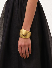 ITEM DETAILS The Byron Cuff in Gold from our Fall 2025 Collection, Hypnotic. A gold plated wrist cuff featuring fragmented sections that create a textured, sculptural look. - 12KT gold plated wrist cuff - Fragmented sections throughout - Slip on style Style Code: 5055XF25A1 SIZE DETAILS One size. CARE INSTRUCTIONS 100% brass Zimmermann jewellery is made from 12kt gold-plated brass Please remove during exercising, showering or swimming Avoid contact with perfumes, acetones, creams, and water to prevent damage or discoloration Clean gently with a soft, lint-free cloth. Avoid cleaning products Store in a cool, dry place, away from direct sunlight and heat Always check the label or care card for specific care instructions.