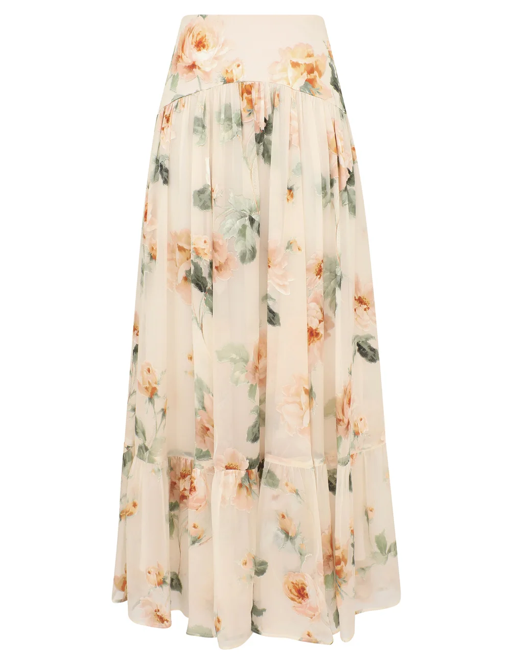 ITEM DETAILS The Carousel Burnout Midi Skirt in Cream Rose from our Spring 2026 Collection, Kindred Spirit. A midi skirt featuring a fixed waistband, centre back invisible zip and heavy gathering throughout. - Mid-length skirt - Fixed, mid-rise waistband - Centre back invisible zip closure - Heavily gathered - Lined Style Code: 7883SS263 SIZE DETAILS 0P 0 1 2 3 4 Length 37 40.5 40.5 40.5 40.5 40.5 Waist 25 27 28.5 30.5 32.5 34.5 Fitted waistband, relaxed throught the skirt This garment fits true to size Available in size 0P, suited to clients who are under 5'3"/ 160cm Model is 5'9.5"/178 cm, bust size 32C/10C and wears a size 0 Item measurements are in inches CARE INSTRUCTIONS Non burnout: 76% viscose, 24% silk; burnout: 100% silk; lining: 100% viscose Dry clean only code f (hydrocarbon only); Remove any detachable trims prior to dry cleaning; Cover to protect trim; Iron in low temperature with protective cloth; Light steam only; Do not spot clean Always check the label or care card for specific care instructions.