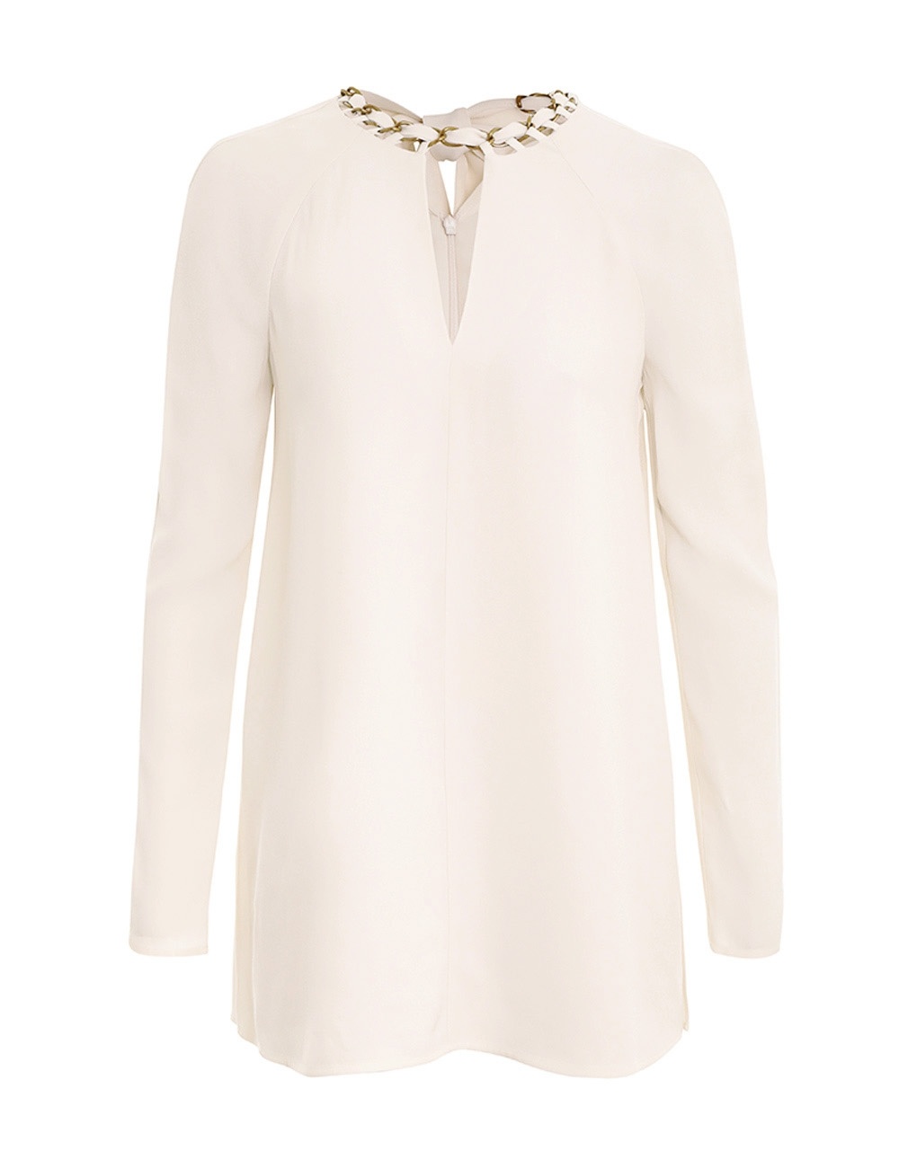 ITEM DETAILS The Chain Embellished Tunic Top in Cream from our Fall 2023 Collection, Luminosity. A long sleeve tunic top featuring a chain detail neckline and necktie. - Long sleeve tunic top - Centre back zip - Lined Style Code: 7894TRF23 SIZE DETAILS 0P 0 1 2 3 Length 69 73 73 74 75 Bust 86 92 96 102 108 Waist 96 102 106 112 118 Sleeve 69 73 74 75 76 Relaxed fit This garment fits true to size Available in size 0P, suited to clients who are under 5'3"/ 160cm Model is 5'9.5"/178 cm, bust size 32C/10C and wears a size 0 Item measurements have been rounded to the nearest cm. CARE INSTRUCTIONS Main: 100% viscose Exclusive of trims Dry clean only code p with protective bag Cover and protect hardware Cool iron on reverse Do not spot clean Always check the garment care label for specific care instructions.