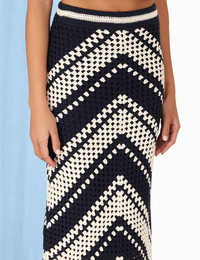 ITEM DETAILS The Chintz Crochet Fringed Skirt in Cream/Navy from our Summer Swim 2023 Collection. A crochet midi skirt featuring a fringed hem and contrast elastic waistband. - Crochet midi skirt - Slip on style - Lined Style Code: 6817SSS234 SIZE DETAILS 0P 0 1 2 3 4 Length 69 76 76 76 76 76 Waist 60 63 68 73 78 83 Hip 61 66 71 76 81 86 Elasticated waist for an easy fit. This garment fits true to size, we recommend you select your normal size. Available in size 0P, specially designed with petite proportions that are suited to clients who are under 5'3"/ 160cm. Our model is 5'9.5" / 178 cm, bust size 32C/10C and is wearing a size 0. Item measurements have been rounded to the nearest cm. CARE INSTRUCTIONS Main: 100% cotton Lining: 86% polyester, 14% elastane Exclusive of trims Gentle cold hand wash separately with mild detergent Do not bleach Do not soak, wring or rub Do not tumble dry Dry flat inside out, away from direct sunlight Cool iron on reverse Store garment flat, do not hang Dry cleanable code f Always check the garment care label for specific care instructions.