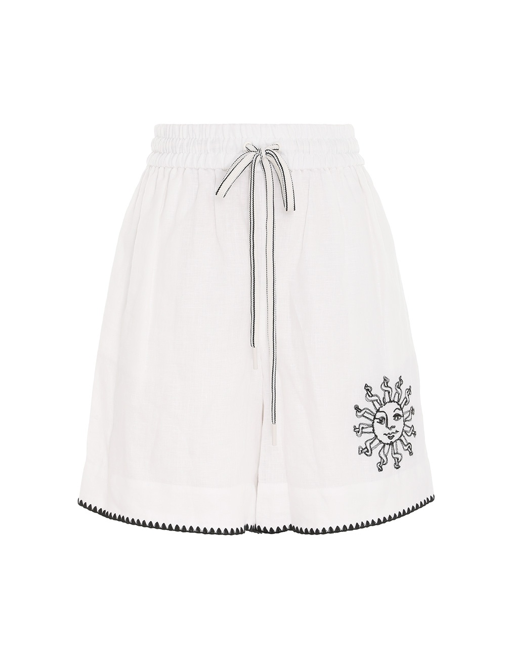 ITEM DETAILS The Clover Embroidered Shorts in Ivory from our Resort Swim 2023 Collection. A linen long line short with a drawstring elasticated waistband, topstitching, embroidery and side seam pockets. - Linen long line short - Embroidery throughout - Side seam pockets - Drawstring waistband - Lined Style Code: 5172ACLO STYLING Style the shorts with the matching Clover Embroidered Shirt or pair over swimwear for an effortless poolside look. SIZE DETAILS 0P 0 1 2 3 Waist 62 66 70 74 80 Length 40 43 44 44 45 This garment fits true to size, we recommend you select your normal size. Relaxed fit. Available in size 0P, specially designed with petite proportions that are suited to clients who are under 5'3""/ 160cm. Our model is 5'9.5"" / 178 cm, bust size 32C/10C and is wearing a size 0. CARE INSTRUCTIONS Main: 100% linen Exclusive of trims Dry clean only code f with protective bag Cool iron with protective cloth Do not spot clean Turn garment inside out before dry cleaning Always check the garment care label for specific care instructions