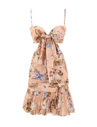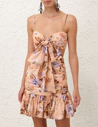 ITEM DETAILS The Coco Bow Front Mini Dress in Peach Multi Floral from our Summer Swim 2025 Collection. A cotton mini dress featuring a front bow-tie knot, exposed sides and ruching throughout, finished with a frilled hem. - 100% cotton fabric - Bust includes underwire - Removable, adjustable straps for versatile fit - Gathered panels - Shirred elastic across back with hook and eye closure - Invisible zip closure at centre back skirt Style Code: 3492DSS254 SIZE DETAILS 0P 0 1 2 3 Length 23 25 25 25 25.5 Sleeve 8.5 8.5 8.5 8.5 8.5 Designed to be fitted through the bust, waist and hips This garment fits true to size Available in size 0P, suited to clients who are under 5'3"/ 160cm Model is 5'9.5"/178 cm, bust size 32C/10C and wears a size 0 Item measurements are in inches CARE INSTRUCTIONS Main: 100% cotton; lining: 100% cotton Dry clean only code f (hydrocarbon only); Remove any detachable trims prior to dry cleaning; Cover to protect trim; Cool iron with protective cloth; Light steam only; Do not spot clean Always check the label or care card for specific care instructions.