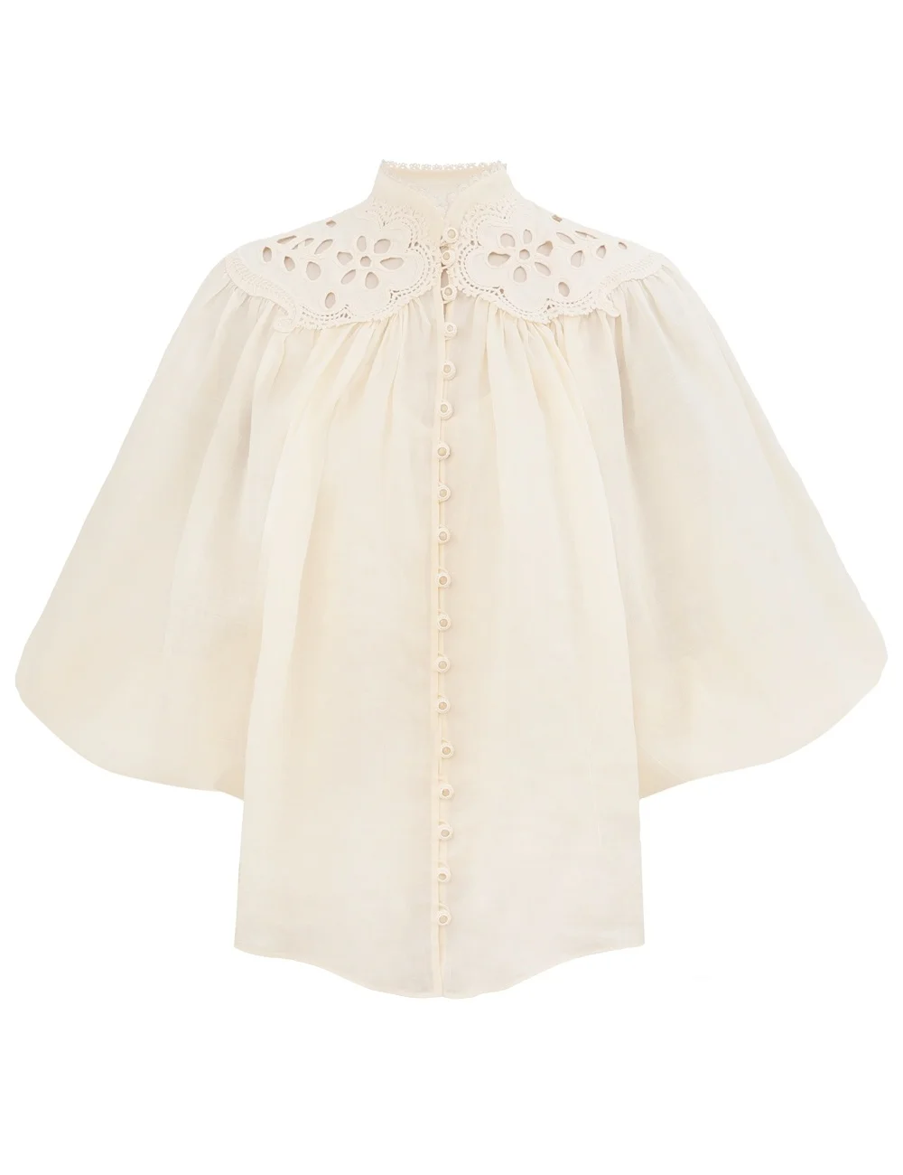 ITEM DETAILS The Coco Embroidered Blouse in Cream from our Summer Swim 2025 Collection. A ramie blouse featuring a dramatic billow sleeves and stand collar with scalloped edging, finished with buttons down the centre front. - 100% ramie fabric - Long sleeve blouse with elasticated cuffs - Stand collar with scallop and lace trim - Gathered bodice - Self-rouleau loops and buttons down centre front - Yoke shoulder detailing Style Code: 3261TSS254 SIZE DETAILS 0P 0 1 2 3 Length 25 26.5 27 27 27 Sleeve 21.5 23 23 23.5 23.5 Designed to be fitted at neck, relaxed throughout This garment fits true to size Available in size 0P, suited to clients who are under 5'3"/ 160cm Model is 5'9.5"/178 cm, bust size 32C/10C and wears a size 0 Item measurements are in inches CARE INSTRUCTIONS Main: 100% ramie, embroidery: 100% polyester, slip: 100% cotton Dry clean only code f (hydrocarbon only); Remove any detachable trims prior to dry cleaning; Cover to protect trim; Cool iron with protective cloth; Light steam only; Do not spot clean Gentle cold hand wash separately with mild detergent; Remove any detachable trims prior to cleaning; Cover to protect trim; Do not soak, rub or wring; Do not bleach; Dry in shade; Cool iron with protective cloth; Do not tumble dry; Do not spot clean; Dry cleanable code f (hydrocarbon only); Always check the label or care card for specific care instructions.