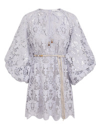 ITEM DETAILS The Coco Lace Tunic Mini Dress in Powder Blue from our Summer Swim 2025 Collection. A lace tunic dress featuring a self tie rouleau neckline and billow sleeves with elasticated cuffs, finished with scalloped hem edging. - Lace mini dress - Plunging V-neckline - Long, relaxed sleeves with elasticated cuffs - Removable rope waist tie - Scalloped hem - Invisible zip closure at centre back - Comes with separate slip Style Code: 4559DSS254 SIZE DETAILS 0P 0 1 2 3 Length 30.5 33 33.5 34 34.5 Sleeve 23.5 25.5 25.5 26 26.5 Designed for a relaxed, loose fit This garment fits true to size Available in size 0P, suited to clients who are under 5'3"/ 160cm Model is 5'9.5"/178 cm, bust size 32C/10C and wears a size 0 Item measurements are in inches CARE INSTRUCTIONS Main: 100% polyester; slip: 100% cotton Dry clean only code f (hydrocarbon only); Remove any detachable trims prior to dry cleaning; Cover to protect trim; Cool iron with protective cloth; Light steam only; Do not spot clean Gentle cold hand wash separately with mild detergent; Remove any detachable trims prior to cleaning; Cover to protect trim; Do not soak, rub or wring; Do not bleach; Dry in shade; Cool iron with protective cloth; Do not tumble dry; Do not spot clean; Dry cleanable code f (hydrocarbon only); Always check the label or care card for specific care instructions.