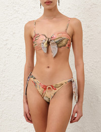 ITEM DETAILS The Coco Scarf Tie Pant in Tan Multi Floral from our Summer Swim 2025 Collection. A metallic lycra, low rise bikini pant featuring a dipped front and side ties. - Lycra bikini pant with minimal coverage - Ties with knots at hips - Lined - Pant only, bra sold separately Style Code: 4221WSS254 SIZE DETAILS This garment fits true to size Model is 5'10.5"/179 cm, bust size 34C/12C and wears a size 0 CARE INSTRUCTIONS Main: 64% polyester, 16% metallic, 12% polyamide, 8% elastane; lining: 92% recycled nylon, 8% spandex Do not roll up when wet; Rinse thoroughly after use; Remove any detachable trims prior to washing; Cold hand wash separately with mild detergent, avoid fabric softener; Dry in shade; Do not bleach or iron; Do not tumble dry; Do not dry clean; Light colours may be transparent when wet; Avoid contact with sunscreens, oils and rough surfaces; Avoid high temperature pools and spas treated with harsh chemicals Always check the label or care card for specific care instructions.