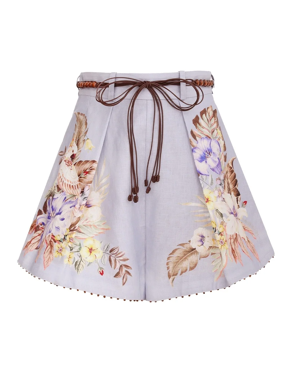 ITEM DETAILS The Coco Tuck Short in Powder Blue Multi Floral from our Summer Swim 2025 Collection. A linen short featuring a self tie bead belt and embroidery detail throughout, finished with a wooden bead detailing at the hem. - 100% linen fabric - Self tie belt at waist - Side seam pockets - Invisible centre back zip closure - Wooden bead trim along the hem - Lined Exclusive: This style featured on Summer Swim 2025 and only available at ZIMMERMANN stores and online. Style Code: 4257ASS254 SIZE DETAILS 0P 0 1 2 3 4 Length 15.5 12 12.5 13 13 13.5 Waist 25 26 28.5 30.5 32.5 34.5 Inseam 2.5 2.5 2.5 2.5 2.5 2.5 Designed to be fitted across the waist, relaxed through hips and legs This garment fits true to size Available in size 0P, suited to clients who are under 5'3"/ 160cm Model is 5'9.5"/178 cm, bust size 32C/10C and wears a size 0 Item measurements are in inches CARE INSTRUCTIONS Main: 100% linen; lining: 100% cotton Dry clean only code f (hydrocarbon only); Remove any detachable trims prior to dry cleaning; Cover to protect trim; Cool iron with protective cloth; Light steam only; Do not spot clean Always check the label or care card for specific care instructions.