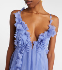 Crafted from pure silk with delicate sheer panels, the Como minidress is defined by a charming, asymmetric silhouette. The piece is embellished with petal-inspired details along the plunging neckline and low back, adding a touch of ethereal romanticism. Product Details - Material: 100% silk - Care instructions: dry clean - Made in China - Color: blue - Designer color name: Jacaranda - Lining: 100% viscose - Item number: P01171569 Size & Fit - Fits large to size - we recommend trying one size smaller - Low back - Cinched waist - Non-stretchy fabric - The model seen in the picture is 178cm-5'10" and wearing a size 00