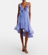 Como asymmetric floral-appliqué silk minidress