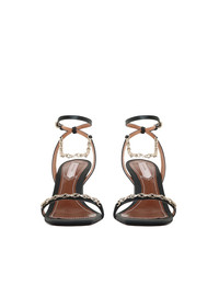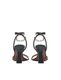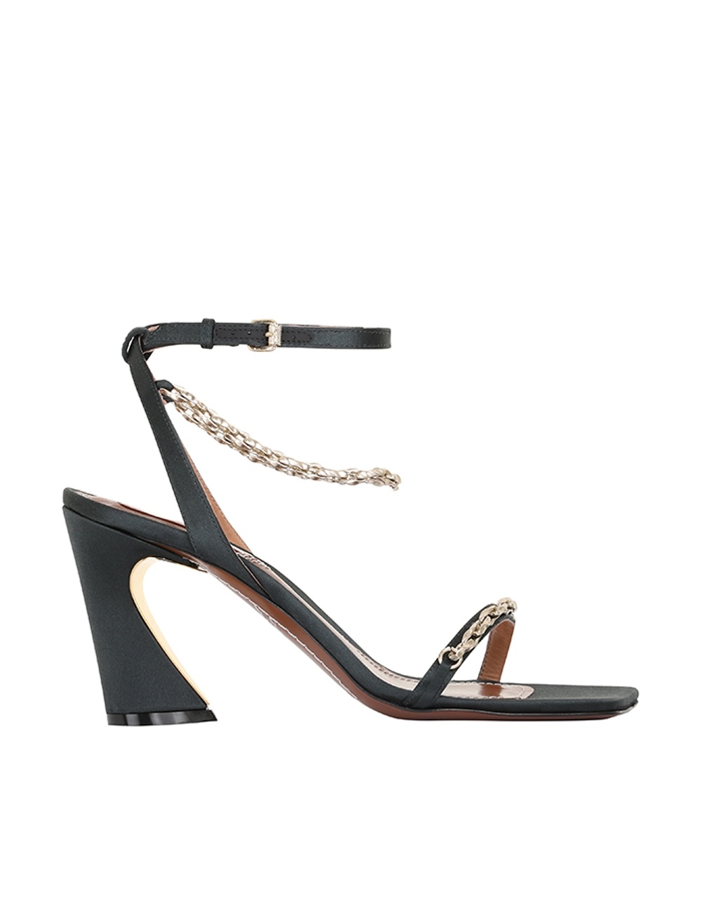 ITEM DETAILS The Crescent Chain Sandal in Malachite from our Fall 2022 Collection, Stargazer. A satin heeled sandal featuring custom plated chain strap details and an adjustable buckle closure. - Satin heeled sandal - Chain detailing - Made in Italy - 85mm heel Style Code: 4123F22 STYLING Style the Crescent Chain Sandal with a midi dress and collection jewellery for an elevated event look. SIZE DETAILS This shoe fits true to size, we recommend you select your normal size. Heel height: 85mm CARE INSTRUCTIONS 72% viscose, 28% silk raso stretch upper 100% calf leather lining 100% calf leather outsole Exclusive of trims. This item was handcrafted using genuine leather. Leather can alter or stain if in contact with humidity or atmospheric agents. These are naturally occurring features and should not be thought of as imperfections. On occasion leather can stain clothing or other objects it comes into contact with. To maintain in best condition, avoid direct exposure to light and heat, water, oils, perfume and cosmetics and store at room temperature. Always check the garment care label for specific care instructions
