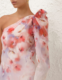 ITEM DETAILS The Crush Asymmetrical Mini Dress in Scarlet Floral from our Resort 2025 Collection, Crush. A silk linen mini dress featuring one shoulder silhouette with a gathered shoulder sleeve, a placement print and an invisible zip opening at the right side. - Silk linen mini dress - One shoulder silhouette - Right side zip closure - Piping detail at the sleeve hemline - Fully lined Runway: This style was featured on the R25 Runway. Style Code: 2193DR251 SIZE DETAILS 0P 0 1 2 3 4 Length 77 82 83 85 86 88 Bust 82 86 92 96 102 106 Sleeve 41 44 44 44 44 44 Waist 82 88 92 98 102 108 Hip 96 100 106 110 116 120 Slim fit throughout This garment fits true to size Available in size 0P, suited to clients who are under 5'3"/ 160cm Model is 5'9.5"/178 cm, bust size 32C/10C and wears a size 0 Item measurements have been rounded to the nearest cm CARE INSTRUCTIONS Main: 55% linen, 45% silk, : 100% cotton, contrast: 100% polyester Dry clean code f (hydrocarbon only), inside out in a protective bag; Remove detachable trims and accessories prior to cleaning; Cover to protect hardware; Cool iron with protective cloth; Do not spot clean; Always check the label or care card for specific care instructions.