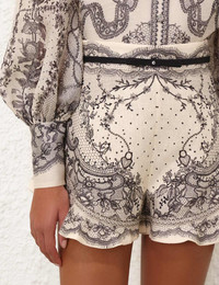 ITEM DETAILS The Crush Flat Front Frill Short in Ivory Locket from our Resort 2025 Collection, Crush. A linen short featuring a frill hemline, fitted waistband and a removable belt. - Linen short - Fitted waistband with removable belt - Frill hem detail - Centre back zip Style Code: 2391AR251 SIZE DETAILS 0P 0 1 2 3 4 Length 26 28 28 29 30 30 Waist 69 72 77 82 87 92 Fitted high waist This garment fits true to size Available in size 0P, suited to clients who are under 5'3"/ 160cm Model is 5'9.5"/178 cm, bust size 32C/10C and wears a size 0 Item measurements have been rounded to the nearest cm CARE INSTRUCTIONS Main: 100% linen, lining: 100% cotton Dry clean code f (hydrocarbon only), inside out in a protective bag; Remove detachable trims and accessories prior to cleaning; Cover to protect hardware; Cool iron with protective cloth; Do not spot clean; Always check the label or care card for specific care instructions.