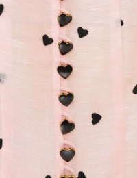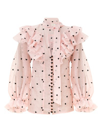 ITEM DETAILS The Crush Embroidered Blouse in Pink Hearts from our Resort 2025 Collection, Crush. A silk linen blouse featuring a plunging V-neckline with embroidered frills and a neck tie; finished with rouleau loops and heart buttons down the centre front. - Silk linen blouse - Long blouson sleeves - Elasticated cuffs with frills - Self covered neck tie - Picot edging - Heart buttons down the centre front Runway: This style was featured on the R25 Runway. Style Code: 2302TR251 SIZE DETAILS 0P 0 1 2 3 4 Length 65 70 71 71 72 73 Sleeve 47 50 50 50 50 50 Relaxed fit This garment fits true to size Available in size 0P, suited to clients who are under 5'3"/ 160cm Model is 5'9.5"/178 cm, bust size 32C/10C and wears a size 0 Item measurements have been rounded to the nearest cm CARE INSTRUCTIONS Main: 53% linen, 47% silk Dry clean code f (hydrocarbon only), inside out in a protective bag; Remove detachable trims and accessories prior to cleaning; Cover to protect hardware; Cool iron with protective cloth; Do not spot clean; Always check the label or care card for specific care instructions.