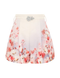 ITEM DETAILS The Crush Flat Front Short in Scarlet Floral from our Resort 2025 Collection, Crush. A silk cotton high waisted short featuring side seam pockets and a removable belt; finished with placement print throughout. - Silk cotton short - High waisted with removable belt - Placement print throughout - Deep tucks at front - Welt pockets on back - Invisible zip at centre back Style Code: 2355AR251 SIZE DETAILS 0P 0 1 2 3 4 Length 37 39 40 41 41 42 Waist 64 67 72 77 82 87 Fitted high waist This garment fits true to size Available in size 0P, suited to clients who are under 5'3"/ 160cm Model is 5'9.5"/178 cm, bust size 32C/10C and wears a size 0 Item measurements have been rounded to the nearest cm CARE INSTRUCTIONS Main: 53% silk, 47% cotton, lining: 100% viscose Dry clean code f (hydrocarbon only), inside out in a protective bag; Remove detachable trims and accessories prior to cleaning; Cover to protect hardware; Cool iron with protective cloth; Do not spot clean; Always check the label or care card for specific care instructions.