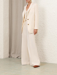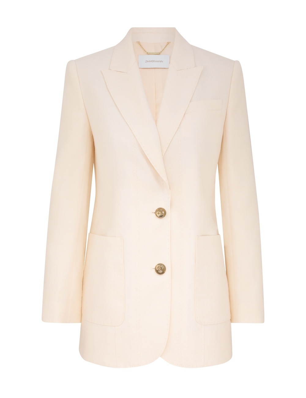 ITEM DETAILS The Crush Single Breasted Jacket in Cream from our Resort 2025 Collection, Crush. A linen jacket featuring a classic collar, front patch pockets and a double button closure at centre front. - Tailored single breasted jacket - Front patch pockets - Top stitch detail - Front left breast pocket - Centre front button closure - Single vent at centre back Style Code: 2397JR251 SIZE DETAILS 0P 0 1 2 3 4 Length 74 79 80 81 81 82 Bust 94 99 104 109 114 119 Sleeve 59 63 64 64 65 65 Tailored fit This garment fits true to size Available in size 0P, suited to clients who are under 5'3"/ 160cm Model is 5'9.5"/178 cm, bust size 32C/10C and wears a size 0 Item measurements have been rounded to the nearest cm CARE INSTRUCTIONS Main: 100% linen, lining: 75% viscose, 25% silk Dry clean code f (hydrocarbon only), inside out in a protective bag; Remove detachable trims and accessories prior to cleaning; Cover to protect hardware; Cool iron with protective cloth; Do not spot clean; Always check the label or care card for specific care instructions.