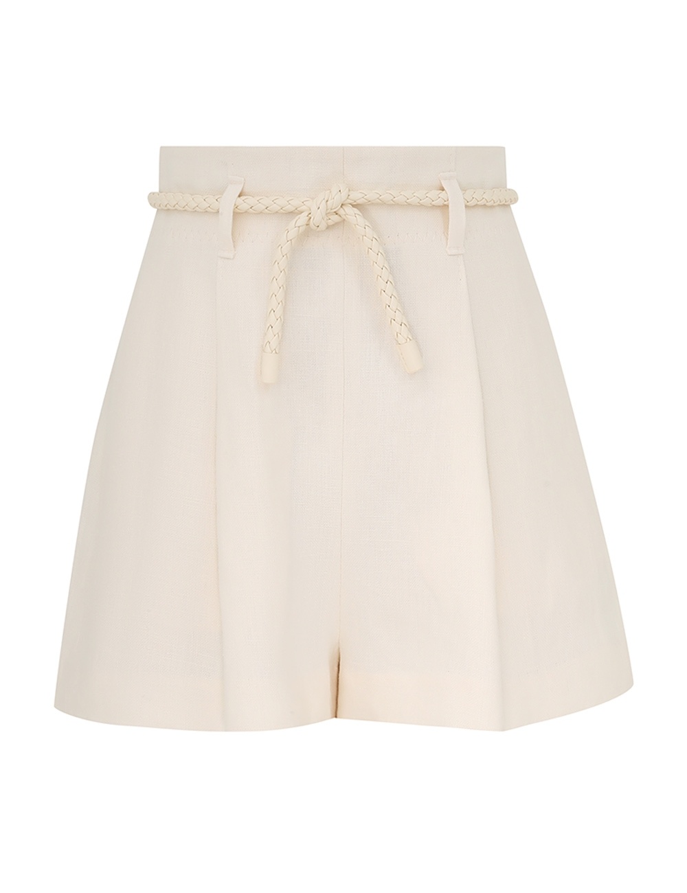 ITEM DETAILS The Crush Linen Tuck Short in Cream from our Resort 2025 Collection, Crush. A linen high waisted short featuring side seam pockets and a removable belt. - Linen short - High waisted with removable belt - Side seam pockets - Tucks throughout - Welt pockets on back - Invisible zip at centre back Style Code: 2103AR251 SIZE DETAILS 0P 0 1 2 3 4 Length 38 40 40 41 41 42 Waist 64 67 72 77 82 88 Fitted high waist This garment fits true to size Available in size 0P, suited to clients who are under 5'3"/ 160cm Model is 5'9.5"/178 cm, bust size 32C/10C and wears a size 0 Item measurements have been rounded to the nearest cm CARE INSTRUCTIONS Main: 100% linen Dry clean code f (hydrocarbon only), inside out in a protective bag; Remove detachable trims and accessories prior to cleaning; Cover to protect hardware; Cool iron with protective cloth; Do not spot clean; Always check the label or care card for specific care instructions.