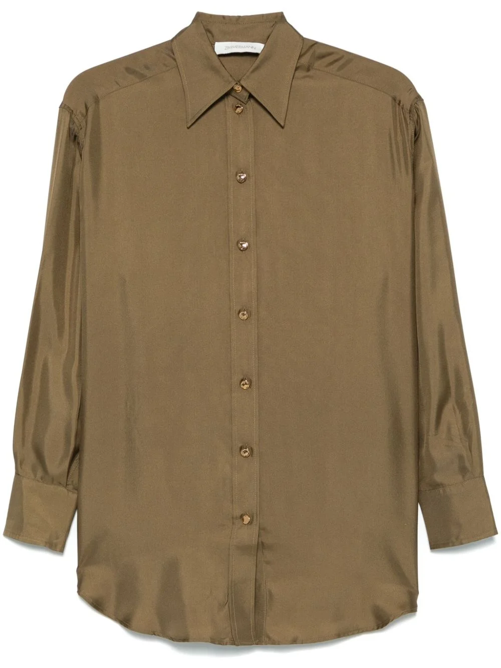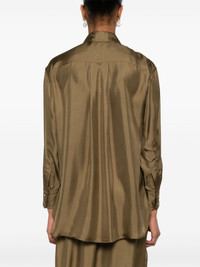 Crush shirt Highlights - Olive green - Front button fastening - Straight-point collar - Buttoned cuffs - Box-pleat detail Imported Composition Silk 100% SIZE & FIT Model measurements Height 5 ft 10 in(1.77 m) Bust/Chest 33.07 in(84 cm) Hips 37 in(94 cm) Waist 24.8 in(63 cm) FittingInformation Designed to be unstructured, offering a loose fit throughout Made from a lightweight non-stretch fabric Washing instructions Dry Clean Only