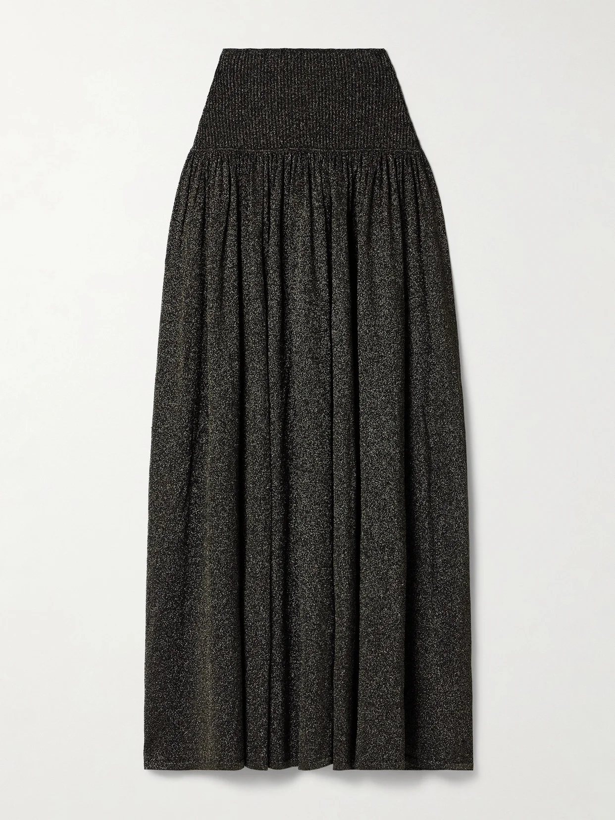 Crush Gathered Metallic Stretch-knit Midi Skirt
