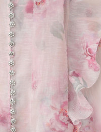 ITEM DETAILS The Crush Tie Neck Ruffle Blouse in Pink Floral from our Resort 2025 Collection, Crush. A silk linen blouse featuring a stand collar with a neck tie with ruffle detailing, rouleau loops with crystal buttons down the centre front and exaggerated sleeves with ruffles. - Silk linen blouse - Long gathered sleeves with elasticated cuffs - Neck tie with ruffle detailing - Picot edging - Placement print - Comes with separate cami Runway: This style was featured on the R25 Runway. Style Code: 2856TR251 SIZE DETAILS 0P 0 1 2 3 4 Length 60 65 65 66 66 67 Bust 125 130 136 140 146 150 Sleeve 56 60 61 62 62 63 Relaxed fit This garment fits true to size Available in size 0P, suited to clients who are under 5'3"/ 160cm Model is 5'9.5"/178 cm, bust size 32C/10C and wears a size 0 Item measurements have been rounded to the nearest cm CARE INSTRUCTIONS Main: 53% linen, 47% silk, slip: 86% recycled polyester, 14% elastane Dry clean code f (hydrocarbon only), inside out in a protective bag; Remove detachable trims and accessories prior to cleaning; Cover to protect hardware; Cool iron with protective cloth; Do not spot clean; Gentle cold hand wash inside out with mild detergent; Remove detachable trims and accessories prior washing; Line dry in shade; Do not soak, bleach or wring; Do not tumble dry; Cool iron on reverse side with protective cloth; Do not spot clean; Dry cleanable code p Always check the label or care card for specific care instructions.