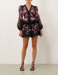 ITEM DETAILS The Dawning Beaded Tuck Short in Black Lily from our Spring 2025 Collection, Illumination. A high waisted silk linen short featuring side seam pockets, fixed waistband, a centre back invisible zip closure and beaded trim on the hemline. - High waisted silk linen short - Fixed waistband - Side seam pockets - Tucks at the front and back - Beaded trim on the hemline - Centre back invisible zip closure Style Code: 4074AS252 SIZE DETAILS 0P 0 1 2 3 4 Length 34 36 36 37 37 38 Waist 66 70 74 80 84 90 Inseam 7 7 7 7 7 7 Fixed high waist This garment fits true to size Available in size 0P, suited to clients who are under 5'3"/ 160cm Model is 5'9.5"/178 cm, bust size 32C/10C and wears a size 0 Item measurements have been rounded to the nearest cm CARE INSTRUCTIONS Main: 52% linen, 48% silk; lining: 100% cotton Dry clean only code f (hydrocarbon only); Remove any detachable trims prior to dry cleaning; Cover to protect trim; Cool iron with protective cloth; Light steam only; Do not spot clean Always check the label or care card for specific care instructions.
