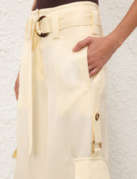 ITEM DETAILS The Dawning Cargo Pant in Lemon from our Spring 2025 Collection, Illumination. A cargo pant featuring centre front closure, D-ring belt and side patch pockets. - Cargo pant - Centre front closure - Patch pockets - Removable belt with D-ring buckle - Belt loops Runway: This style was featured on the S25 Runway. Style Code: 3564PS252 SIZE DETAILS 0P 0 1 2 3 Length 105 115 116 116 117 Waist 72 76 80 86 90 Hip 92 98 104 108 114 Fitted through the waist Relaxed through the hips and legs This garment fits true to size Available in size 0P, suited to clients who are under 5'3"/ 160cm Model is 5'9.5"/178 cm, bust size 32C/10C and wears a size 0 Item measurements have been rounded to the nearest cm CARE INSTRUCTIONS Main: 100% viscose Dry clean only code f (hydrocarbon only); Remove any detachable trims prior to dry cleaning; Cover to protect trim; Do not steam; Cool iron with protective cloth; Do not spot clean Always check the label or care card for specific care instructions.