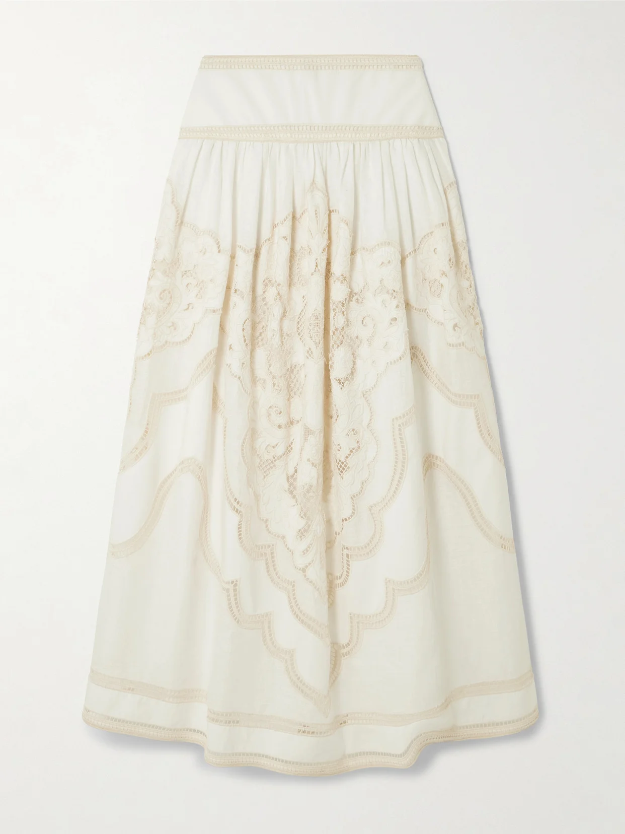 The airy broderie anglaise used to make this 'Daylight' maxi skirt speaks to Zimmermann's bohemian sensibilities. It's lightly gathered along the waist, so it falls in loose folds that sway with every step. Notice how the needlework reveals elegant glimpses of skin.