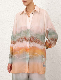 ITEM DETAILS The Daylight Relaxed Shirt in Tie Dye from our Resort Swim 2026 Collection. A relaxed silk shirt featuring long sleeves, a classic collar and buttons down the centre front and on the cuffs. - 100% silk habutae fabric - Partial side splits - Functional buttons down the centre front - Buttoned cuffs - Placement printed Style Code: 5665TRS263 SIZE DETAILS 0P 0 1 2 3 4 Length 28.5 30.5 31 31.5 31.5 32 Bust 49.5 52 53.5 56 57.5 60 Waist 49.5 52 53.5 56 57.5 60 Sleeve 22 23.5 24 24 24.5 24.5 Designed for a relaxed fit Light-weight, non-stretchy fabric This garment fits true to size Available in size 0P, suited to clients who are under 5'3"/ 160cm Model is 5'9.5"/178 cm, bust size 32C/10C and wears a size 0 Item measurements are in inches CARE INSTRUCTIONS Main: 100% silk Dry clean only code f (hydrocarbon only); Remove any detachable trims prior to dry cleaning; Cover to protect trim; Iron in low temperature with protective cloth; Light steam only; Do not spot clean Always check the label or care card for specific care instructions.