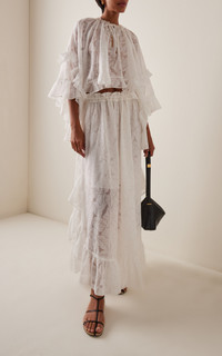 In Twisted Romance, Zimmermann embarks on a voyage through nostalgia, femininity, and the fantasy of escape — a Cruise 26 collection that reimagines pirate folklore through the soft-focus lens of modern romance. PRODUCT DETAILS - Resort '26 - Ties at waist - Composition: Main: 58% Cotton, 42% Polyester; Lining: 100% Cotton - Dry clean - Imported SIZE & FIT - Our model is wearing a size 1 - Model is 5'9" with a 32" bust, 24" waist, and 35" hip