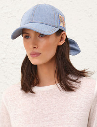 ITEM DETAILS The Denim Tie Cap in Skylark from our Resort Swim 2026 Collection. A denim cap featuring a self tie back design. - 100% cotton fabric - Tie-back design - Signature branded embroidery Style Code: 6705XC26A2 SIZE DETAILS One size. CARE INSTRUCTIONS Main: 100% cotton; lining: 80% polyester 20% cotton Spot clean only if required with a damp clean cloth Always check the label or care card for specific care instructions.