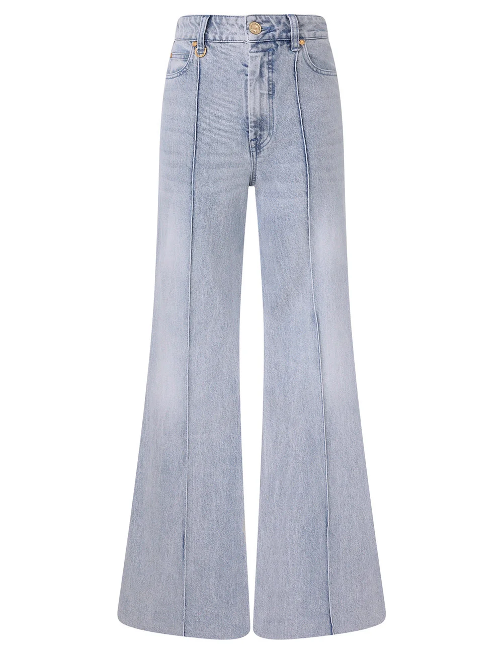 ITEM DETAILS The Denim Wide Leg Jean in Castaway from our Cruise 2026 Collection, Twisted Romance. A high-waisted denim jean featuring a wide flared leg and pin stitched centre leg crease. - Full-length, stretch denim jean - High-waistband with belt loops - Centre front fly with single button closure - Side and back pockets - Wide flared hem Style Code: 6996PC26R SIZE DETAILS 24 25 26 27 28 29 30 31 32 Length 24.5 25 26 27 28.5 29 Waist 24.5 25 26 27 28.5 29 Hip 33 34 35.5 36 37 38.5 Inseam 34 34 34 34 34 34 Fitted through the waist and hips, relaxed through the legs High-rise waist with a full-length leg Heavy-weight, non-stretchy fabric This garment fits true to size Model is 5'9.5"/178 cm, bust size 32C/10C and wears a size 26 Item measurements are in inches CARE INSTRUCTIONS Main: 99% cotton, 1% elastane; pocketing: 86% polyester, 14% cotton Gentle cold machine wash separately with mild detergent; Remove any detachable trims prior to cleaning Cover to protect trim; Do not soak or bleach; Do not tumble dry; Dry in shade without delay; Iron in low temperature with protective cloth; Do not spot clean; Dry cleanable code p Always check the label or care card for specific care instructions.